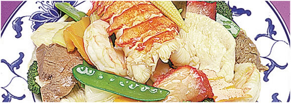 Combination of sliced king crab meat, beef, shrimp, chicken, pork sauteed with Chinese vegetables in special sauce